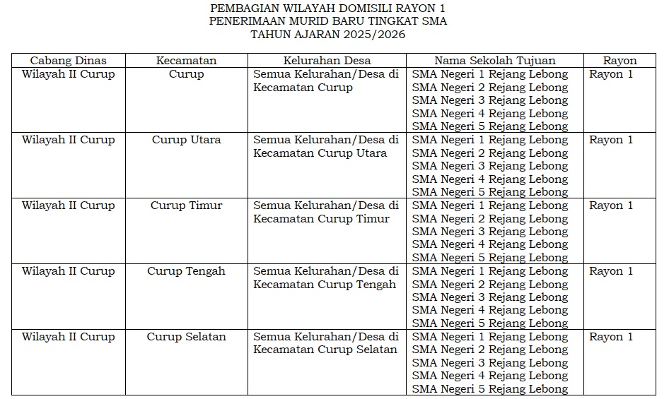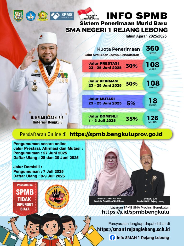 Jadwal, Persyaratan dan Jalur SPMB (Sistem Penerimaan Murid Baru) SMA Negeri 1 Rejang Lebong Tahun Ajaran 2025/2026